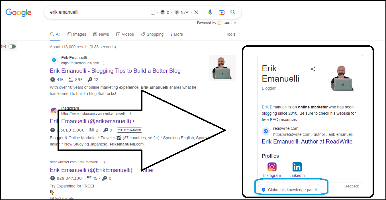 And one of the prizes could be a knowledge panel like mine here: